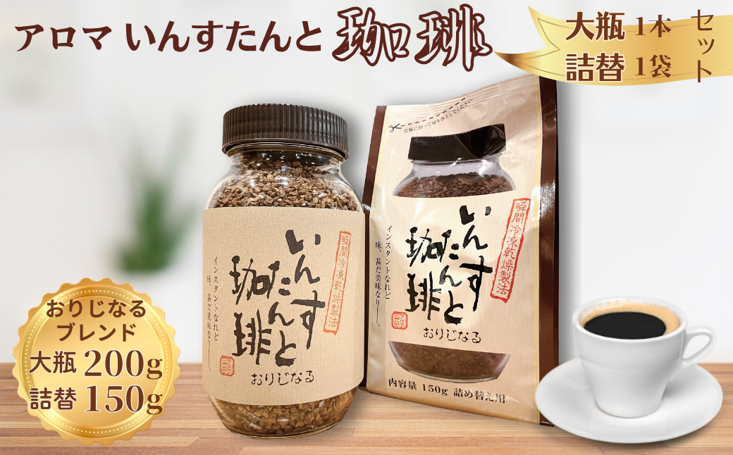 アロマ珈琲 三瀬村 人気 インスタントコーヒー オリジナルブレンド アロマ『いんすたんと珈琲』おりじなる大瓶+詰替えセット インスタントコーヒー 珈琲 飲料 アロマ珈琲 佐賀県 佐賀市 三瀬村:B135-018