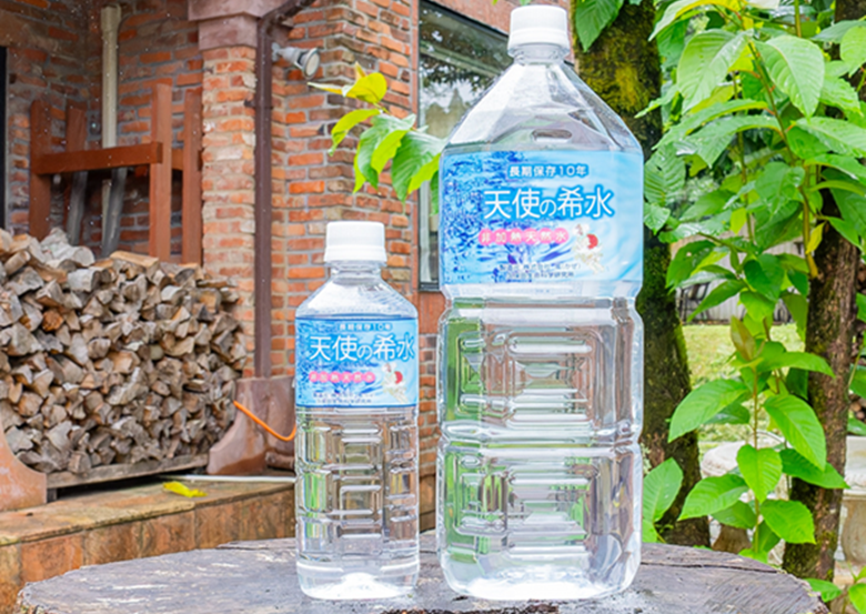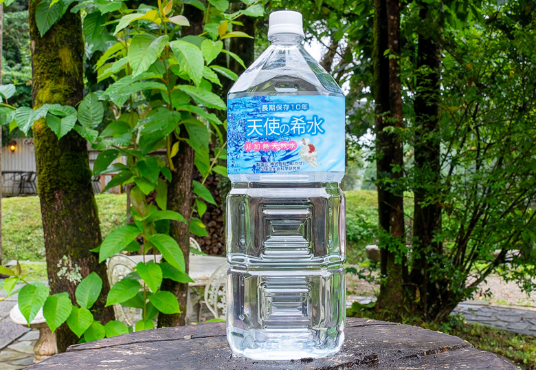 加熱殺菌や除菌の必要がない『10年間の長期保存可能』な非常に飲みやすい軟水 『天使の希水』選べる容量(2L×8本~2L×8本&500ml×24本)