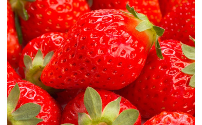 さがほのか:果実の大きさは比較的大きめで、スリムな円錐形をしています。果皮の色は鮮紅色で艶があり、果実全体にしっかりと色付いています。