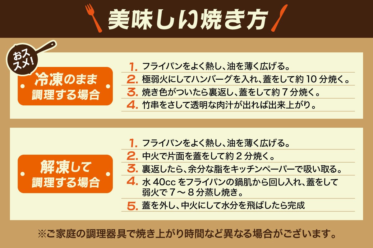 フライパンで焼くだけで、普段の食卓はもちろん、週末のハンバーグプレートや、パンに挟んでハンバーガーにするなど、アレンジ次第でいろいろなシーンでお楽しみいただけます。