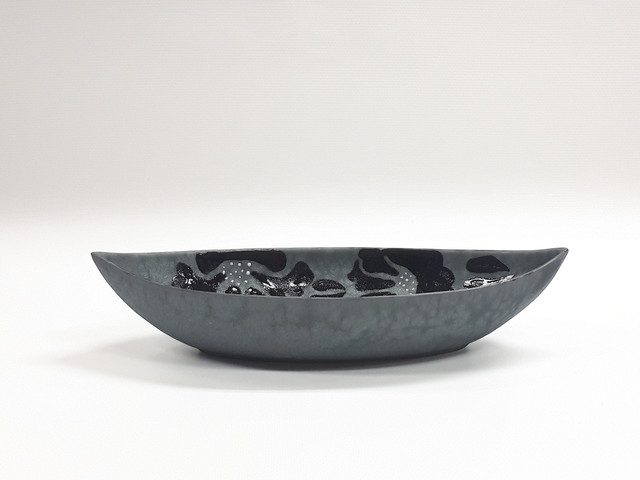 独特の質感を持つモダンな絞り花シリーズのお洒落な船形の器。