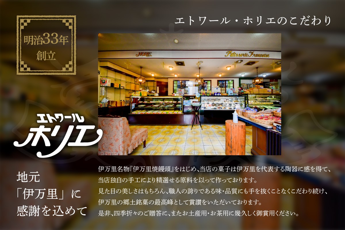 伊万里焼饅頭はほっくりとしたミルク風味の餡を使用し、伊万里焼緑茶は伊万里産緑茶と八女星野村産抹茶をブレンドし、それぞれの茶葉の美味しいところを餡に煉りこんだ抹茶餡を、門外不出の伊万里焼饅頭生地で包み焼き上げております。