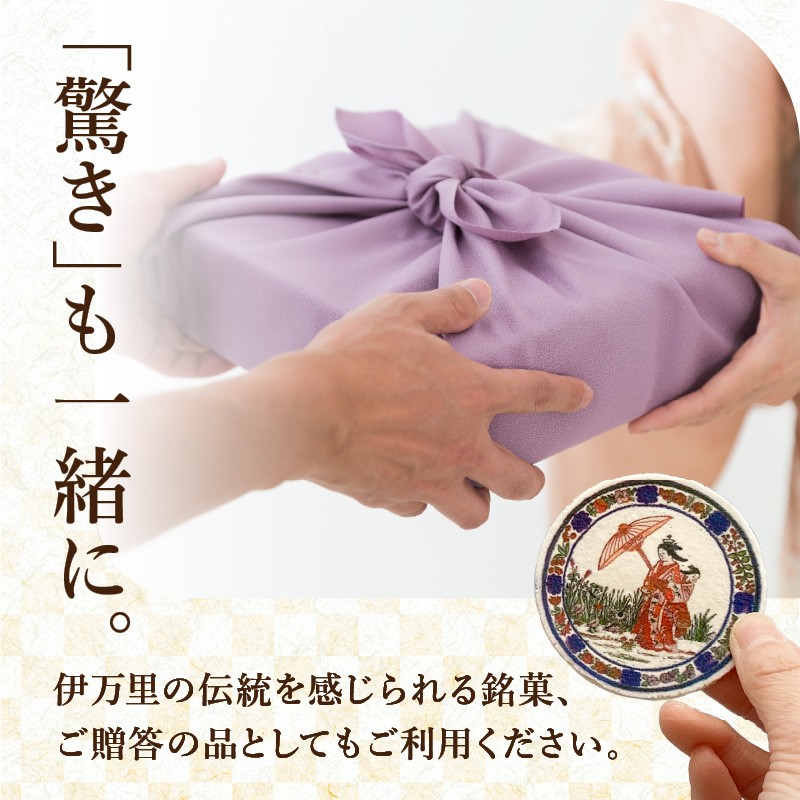 そんな伊万里のお宝オールド・イマリに思いを馳せ、本物に負けない画を最中種に焼き付ける事に成功いたしました。他では見たことないお菓子に仕上がっておりますので、ご鑑賞・ご賞味いただけたら嬉しいです。