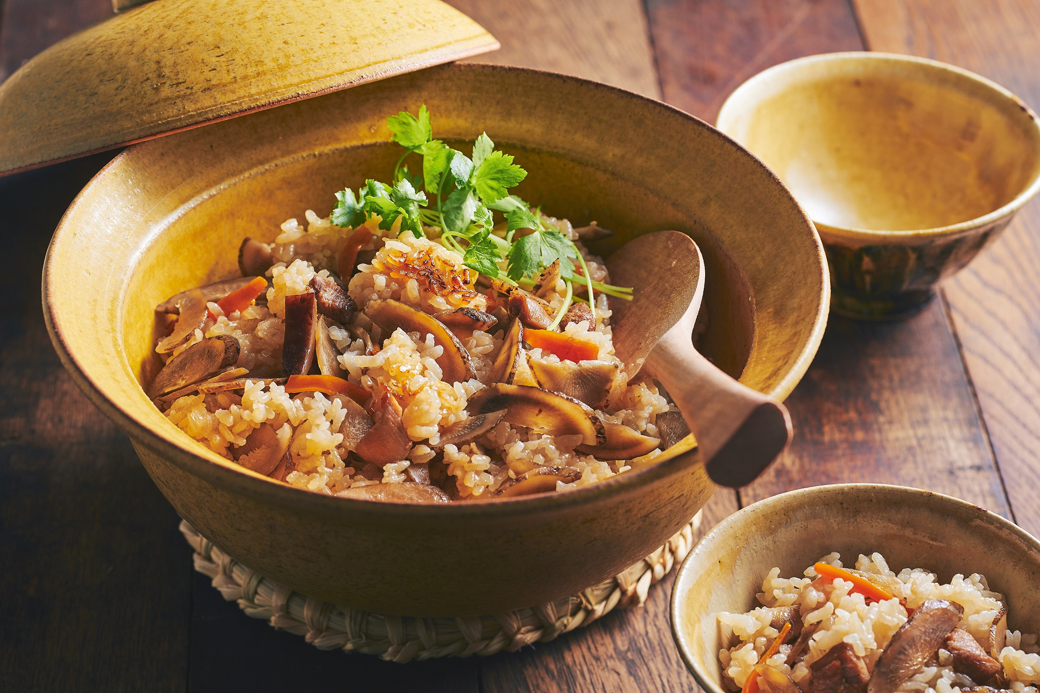 「この美味しさを、生産者として伝えたい。」との想いから自ら企画し、出来上がったのが鶏肉加工品シリーズ「伊万里ヤマンドリ」です。無薬鶏の本来の素材の良さを活かすため、保存料や化学調味料を一切使用せず、岩塩やハーブなどシンプルな材料で仕上げたこだわりのスモークチキンと、九州地方の少し甘めでほっとする味わいの鶏めしの素のセットです。