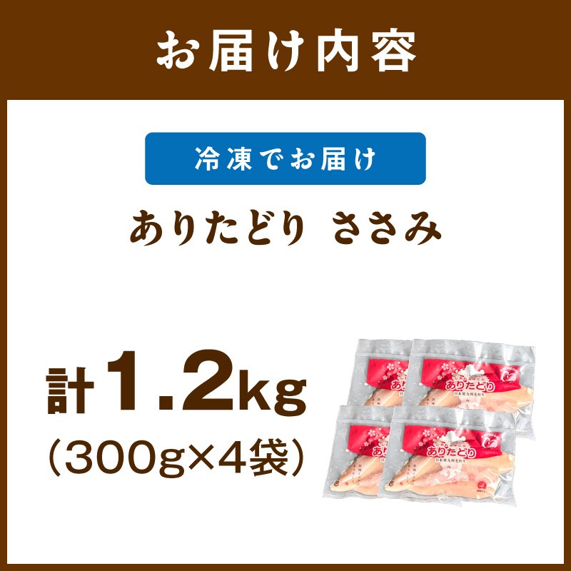 チョイスPayポイントと交換できる品 小分けで便利!いろいろな料理に大活躍 佐賀県ブランド鶏ありたどり 佐賀県ブランド鶏 ありたどり ささみ 1.2Kg(300g×4P) 188-L073