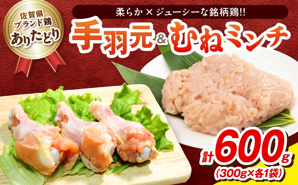 チョイスPayポイントと交換できる品 便利な使いきりパック 佐賀県ブランド鶏 ありたどり 【佐賀県のブランド鶏】個装で便利!! ありたどり 手羽元&むねミンチ セット 合計600g(300g×各1P) 188-L096