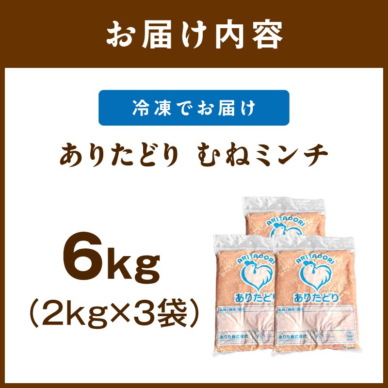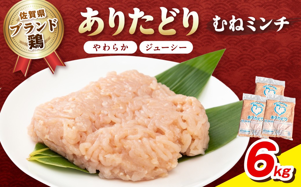 チョイスPayポイントと交換できる品 佐賀のブランド鶏! ありたどり ヘルシーむねミンチ!様々な料理で 佐賀県ブランド鶏 ありたどり むねミンチ 6kg(2kg×3P) 188-L101