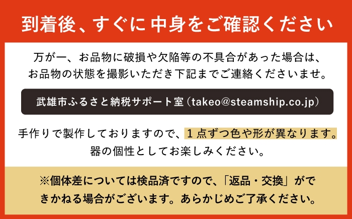 ※手作業にて制作をおこなっておりますので、色の濃淡やむら、形などに個体差がございます。器の個性としてお楽しみください。