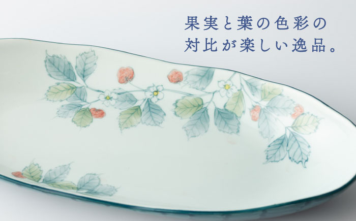 野の花をモチーフにした、あたたかみのあるプレート皿。野いちごと山ぶどうを描きました。