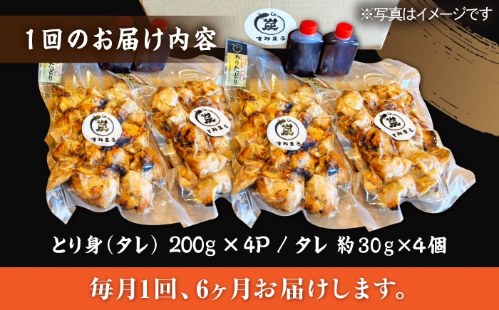 食卓に1品プラス。串から外れた食べやすい焼き鳥です。 【6回定期便】本格炭火焼 やきとり パラちゃん タレ 200g×4パックセット/すみまる [UDH062]