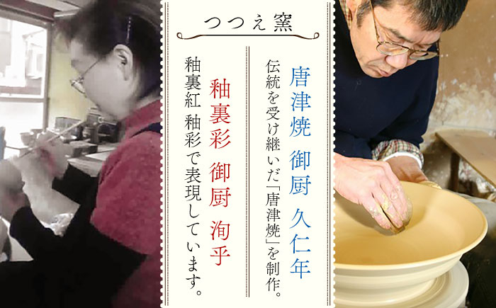 窯主・御厨久仁年は伝統を受け継いだ「唐津焼」を、妻・洵乎は釉裏彩という、主に「釉裏紅」を使った彩の器を作っております。