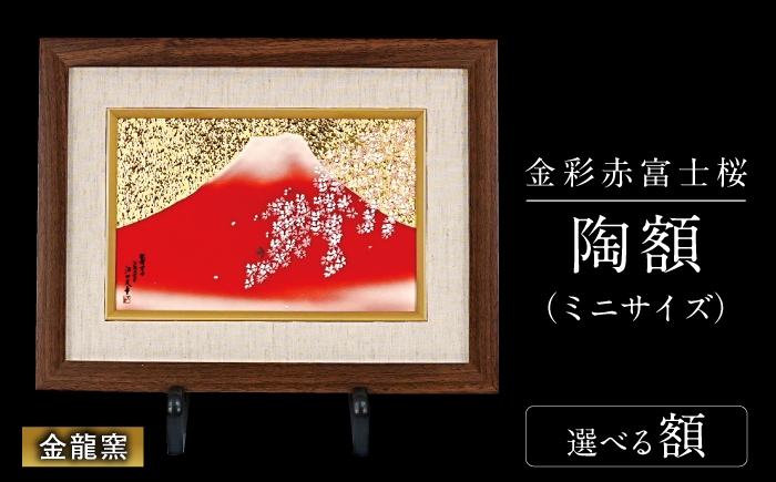 小さなスペースでも楽しめる、赤富士と桜の陶額。 【金龍窯】金彩赤富士桜 陶額(ミニサイズ) [UBP039]
