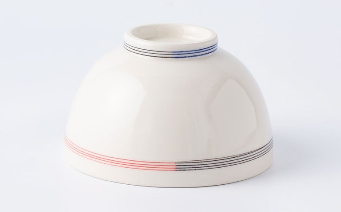 彫った部分に色付けする象嵌(ぞうがん)技法を用いて、器にストライプ模様を施した作品です。シンプルなデザインながら、手仕事の繊細さやぬくもりが感じられる作品になっています。
