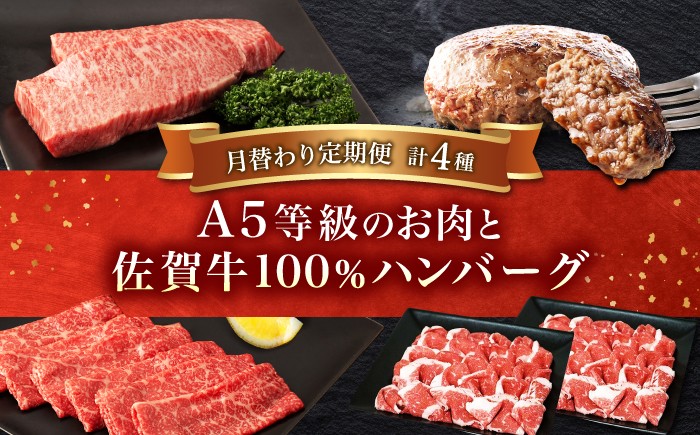 極上の佐賀牛を満喫する定期便。こだわりのハンバーグからステーキ、すき焼きなど。 【4回定期便】佐賀牛プレミアム定期便(寄附金額 10万円コース)/ナチュラルフーズ [UBH125]