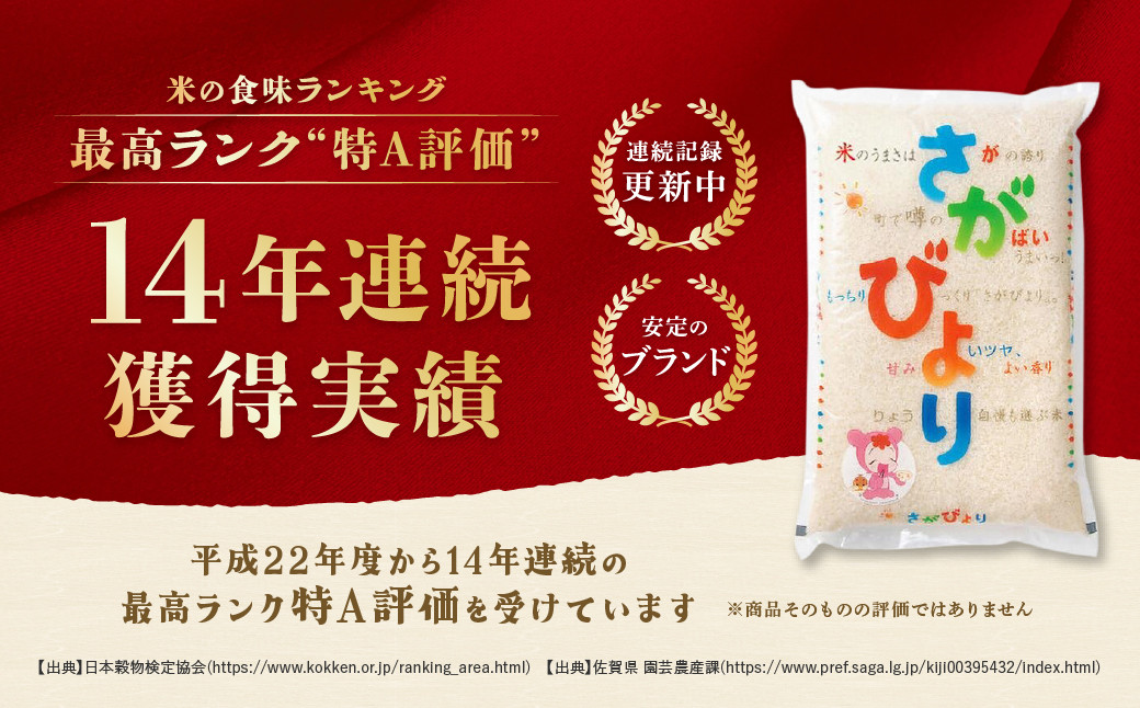 15年連続特A評価の厳選された白米さがびよりを毎月お届け!