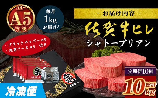 牛肉 肉 冷凍肉 ブランド牛 和牛 黒毛和牛 佐賀牛 ヒレステーキ ヒレ ステーキ 定期便 10カ月 冷凍便 ふるさと納税 佐賀県 鹿島市