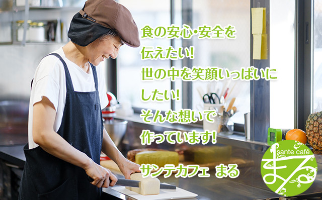 食の乱れや食育が盛んに取り上げられている今だからこそ、心と体が喜ぶような食事が求められていると考え、長年、和菓子職人としての経験とファスティングインストラクター(断食)、ローフード1級、グレインマイスター等の資格を活かし、グルテンフリーのカフェをオープン!カフェまるは「食の大切さ」を伝えたい…そんな想いで始めたお店です。現在は、安心安全の食とお菓子で世の中を笑顔いっぱいにすべく、まあるい笑顔創造企業【sante cafe まる】としてスタート。菓子製造に特化し小麦粉・卵・乳製品・動物性食品は一切使わず、食材はなるべくオーガニックなものを使用。焼き菓子やロースイーツなど満足できるお菓子をお作りしています。