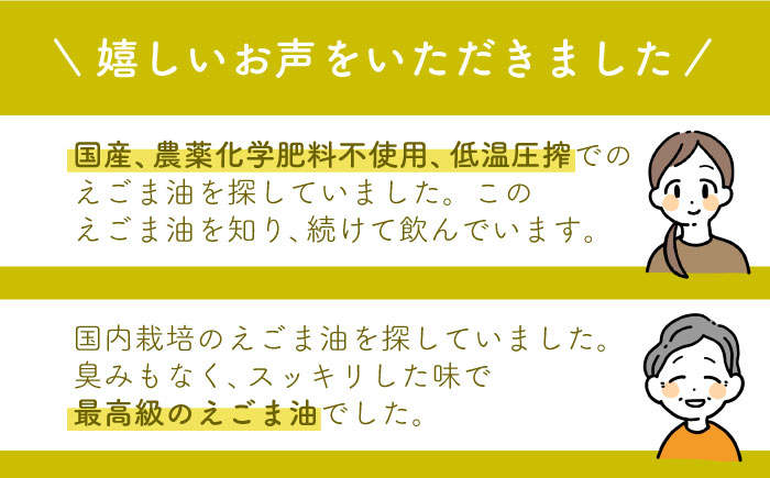 〇国産、農薬化学肥料不使用、低温圧搾でのえごま油を探していました。
