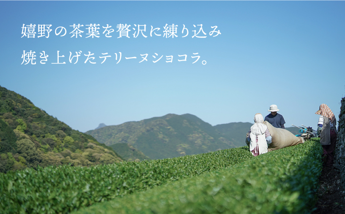 「さえみどり」「あさつゆ」「やぶきた」をベースにブレンドし、緑茶粉末を贅沢に練り込み焼き上げたテリーヌショコラ。