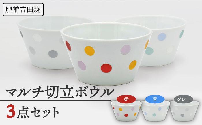 [肥前吉田焼]マルチ 切立ボウル 赤/青/グレー 3点セット【副千…
