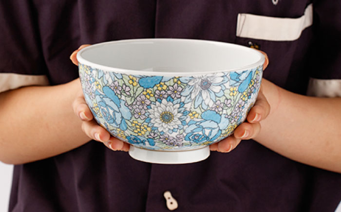 日用食器である、土瓶、急須、湯のみ、茶わん等に染付や銅版転写紙などの技法で製品をつくり上げています。