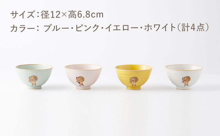 [肥前吉田焼] どろぼう猫 お茶碗 4色セット(ブルー・ピンク・イ…