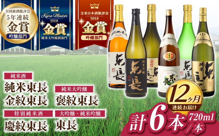 東長 日本酒 瀬頭酒造 人気 おすすめ日本酒 地酒 【12回定期便】東長 6種堪能セット 計6本(大吟醸 東長・褒紋東長・純米吟醸 東長・慶紋東長・純米東長・金紋東長) 720ml【瀬頭酒造】 [NAH124]