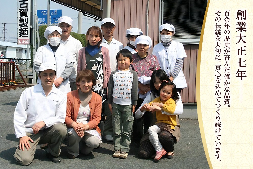 古賀製麺は大正7年(1918年)に手延べそうめん製造業として創業しました。