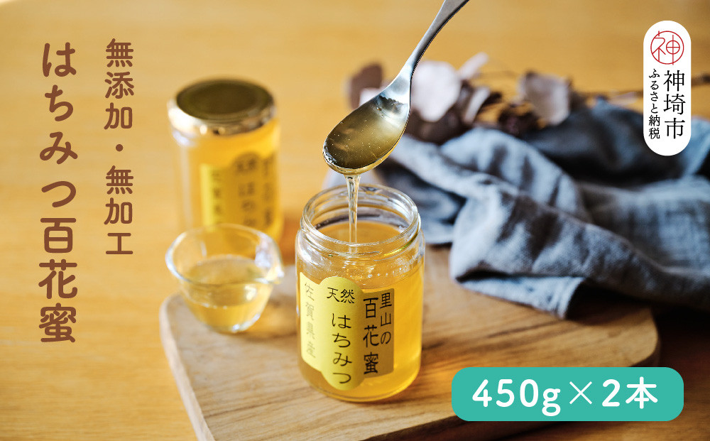 国産天然はちみつ 非加熱 無添加 無加工 熟成 神埼産 完熟 百花蜜 国産はちみつ(神埼産)百花蜜 450g×2 【贈り物 黄金色 自家製 疲労回復 美容 栄養 花の蜜 純粋 九州産】(H050116)