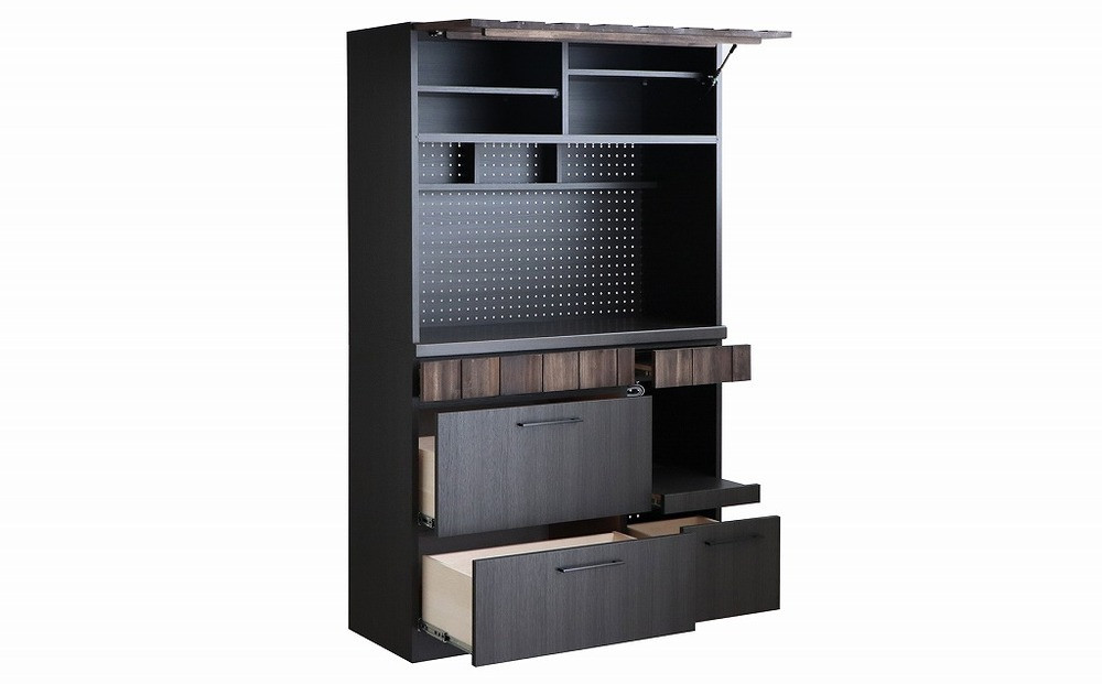 マガジンラックが付いています。間仕切りもできます。安全・安心の国産家具です。