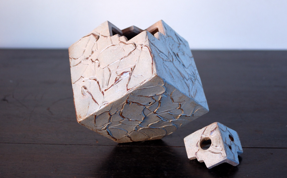 弥兆窯の原さんが作る陶器には不思議な魅力があり、その斬新な造形と表情が魅せる世界観に引き込まれます。金属のような「シャープな造形」のなかに、土の質感を生かした「人の温もり」が感じられます。土を板状にして形成する『板づくり』という手法で作られ、絵付けなしなので見た目はシンプルです。オブジェにもなる和モダンな器たちが想像力を掻き立ててくれます。