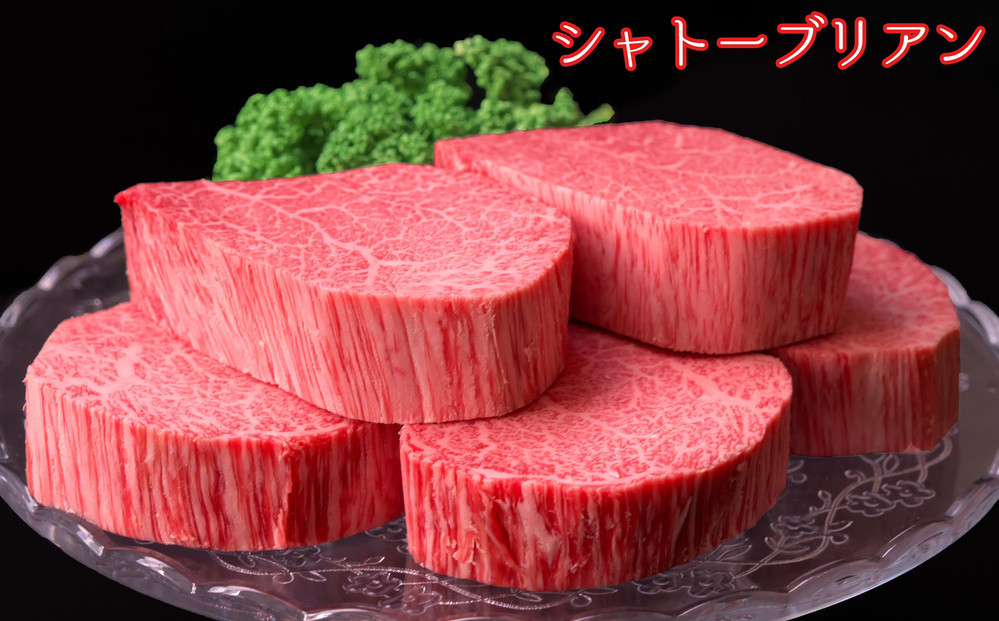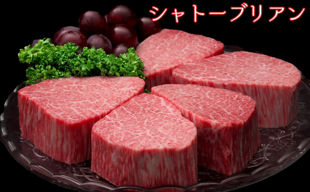 ●シャトーブリアン:希少部位として知られるヒレ肉の中でも太い部分のみを切りだしたまさに牛肉の至宝。脂身が比較的少ないのに、柔らかくて口当たりの良さはたまりません。そのヒレ肉を2cm以上のステーキにしてお届けします。