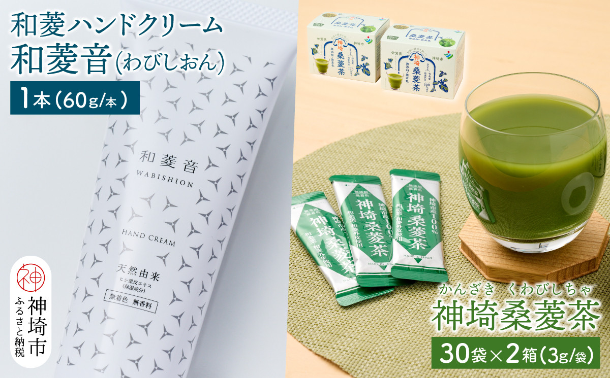 飲んで健康「桑菱茶」・塗ってつるつる「ハンドクリーム」!! 【神埼の特産品 和菱 2点セット】神埼桑菱茶(3g×30包)×2箱 & 和菱ハンドクリーム1本【ふるさと納税 桑菱茶 桑 菱】(H066121)