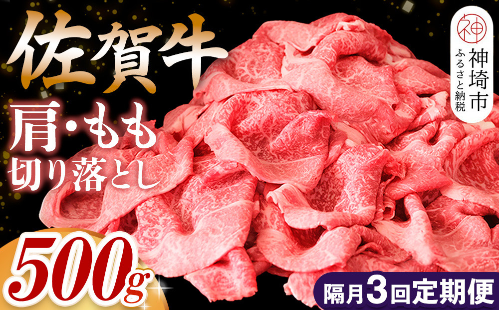 佐賀牛の肩・もも切り落とし500gを2ヶ月に1回ずつ、計3回お届けします。