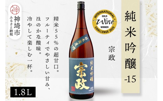 宗政純米吟醸-15 1.8L【酒 日本酒 純米吟醸酒 超甘口 フルーテ…