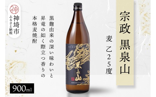 宗政 黒泉山 麦 乙25 900ml【酒 焼酎 麦焼酎 黒麹仕込み ロック…