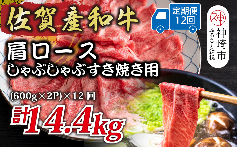 艶さし、プレミアム。佐賀県の上質な黒毛和牛【佐賀産和牛】をお届け致します。 【12か月定期便】佐賀産和牛肩ロースしゃぶしゃぶすき焼き用 1.2kg(600g×2P)×12回【肉 牛肉 ブランド牛 黒毛和牛 ふるさと納税】(H112338)