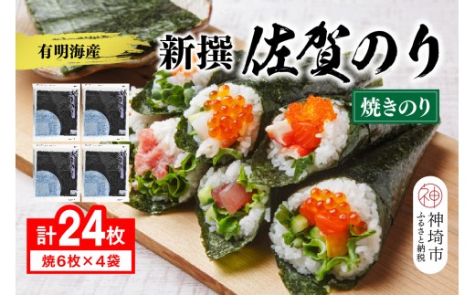 パリッと香ばしい焼き海苔、手巻き寿司やおにぎりを贅沢に 【佐賀海苔 有明海産】新撰佐賀のり(全形6枚×4袋)【佐賀県産 焼き海苔 焼きのり 有明海苔 国産海苔 おにぎり ご飯のお供 手巻き寿司 老舗】(H119104)