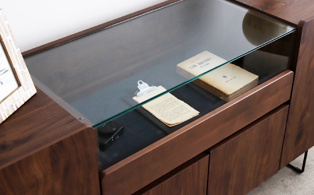コレクションを美しく飾るガラスケースが魅力のキャビネットです。