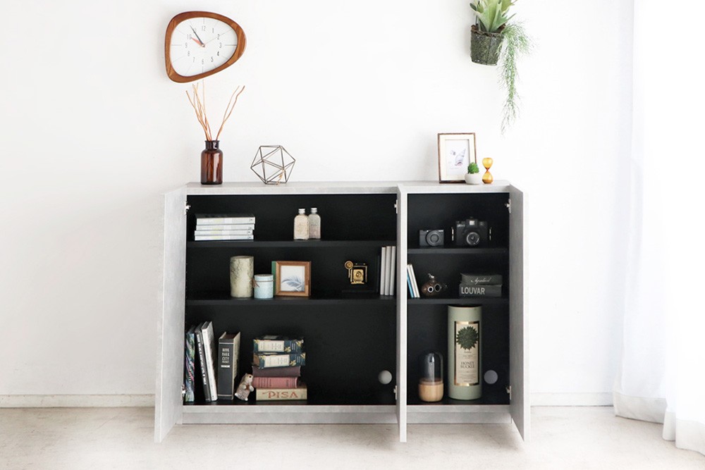 アルダー材の前板がモダンな空間を演出する。シンプルでオシャレなサイドボード。
