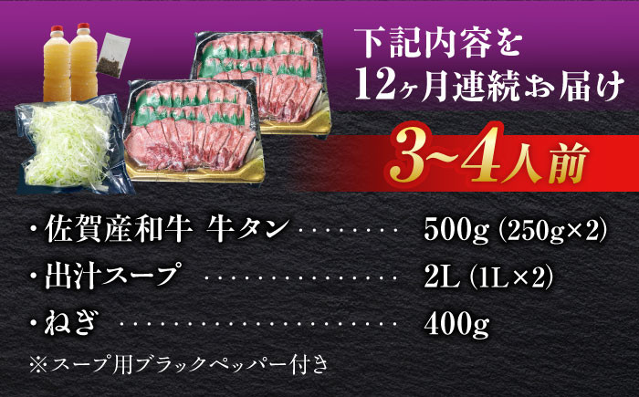 佐賀県産和牛の牛タンでしゃぶしゃぶ! 【全12回定期便】佐賀産和牛 牛タンしゃぶしゃぶセット 500g 計6kg 吉野ヶ里町/やきとり紋次郎 [FCJ061]