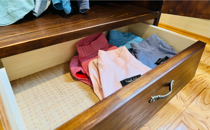 下段は、引き出しになっていますので、帽子などを収納しやすくなっています。