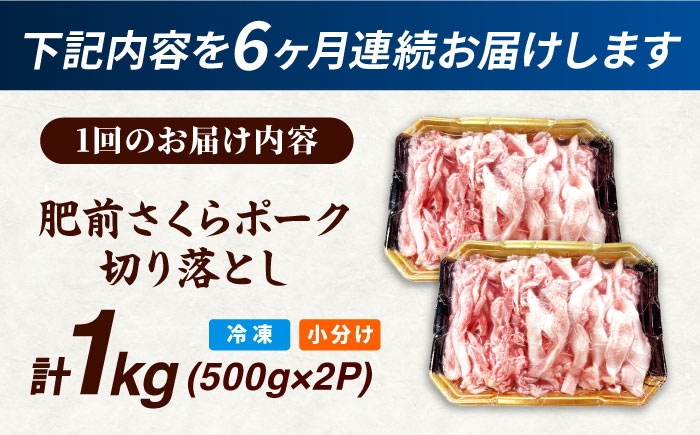 | 容量 | 以下を毎月1回、合計6回お届けいたします さくらポーク 切り落とし 500g×2パック 計1kg 【原料原産地】 佐賀県 【加工地】 唐津市 |