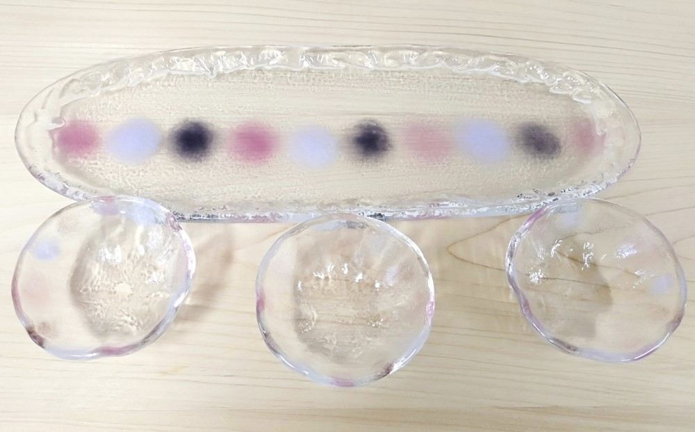 チョイス限定 長皿と可愛い豆皿をお届けします 【チョイス限定】淡雪器 ガラスの長皿・豆皿3枚の4点セット(ピンク系)【ガラス皿 サラダ フルーツ デザート スイーツ アイス 透明感 小ぶり ピンク パープル おもてなし ギフト お祝い プレゼント 限定品】 K003090