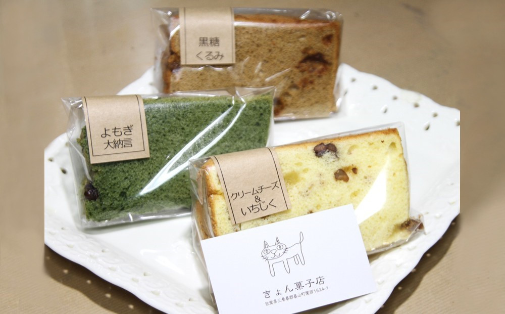 国産小麦粉・太白ごま油等、きょん菓子店のこだわりで厳選された素材を使用して心を込めて一つ一つ手作りする、しっとりふわふわのシフォンケーキです。