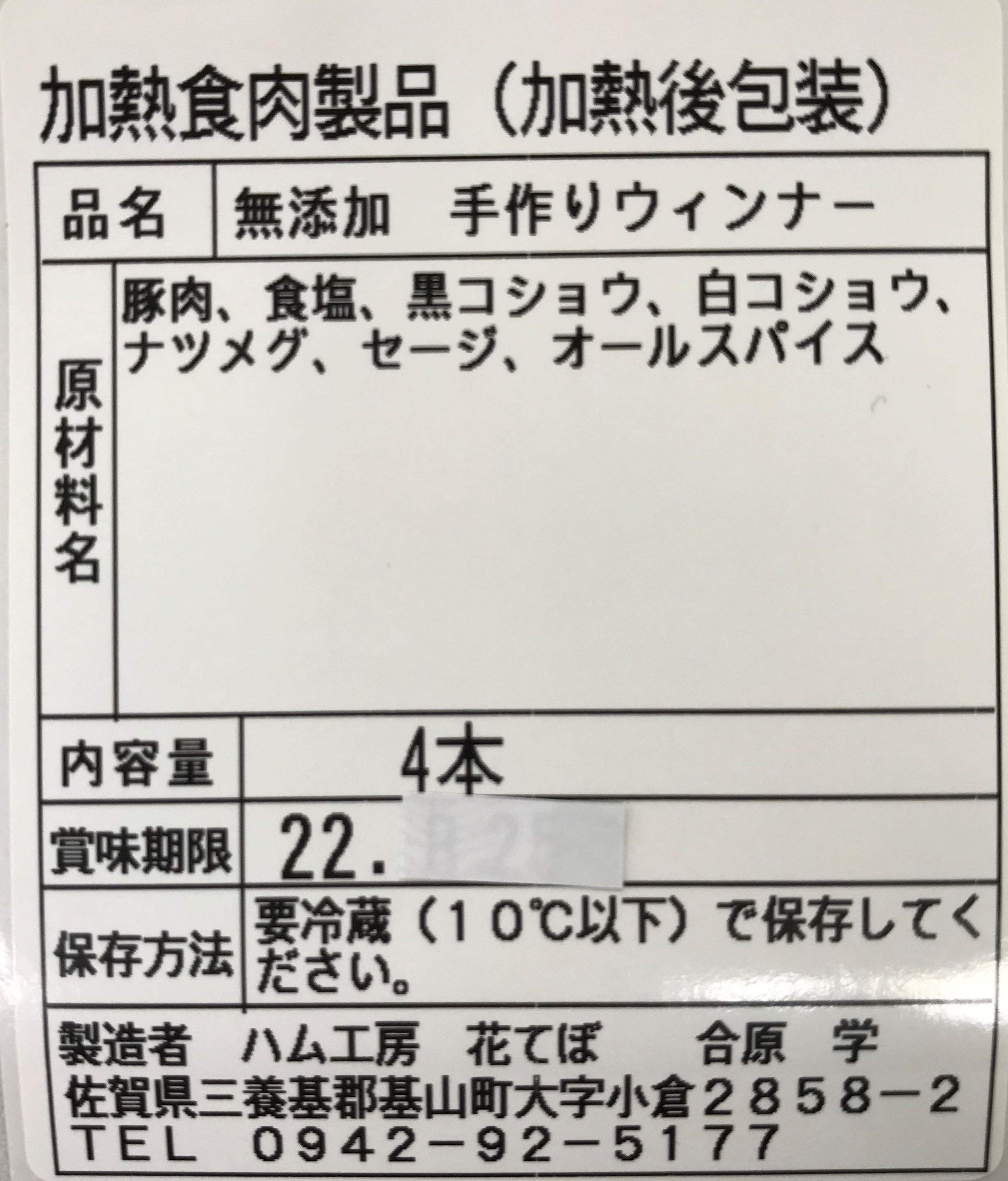 佐賀県基山町でハム・燻製等の食品製造を長年にわたり手掛ける、手作りハム工房「花てぼ」を主宰する合原氏が 食の安全・安心を目指して無添加にこだわり手作りしました。