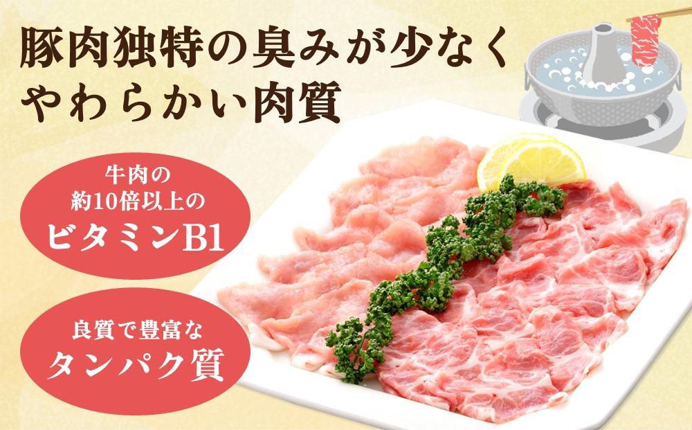特徴は、豚肉独特の臭みが少なく、肉質はやわらかくきめ細かいロース肉をしゃぶしゃぶ用にスライスしました。