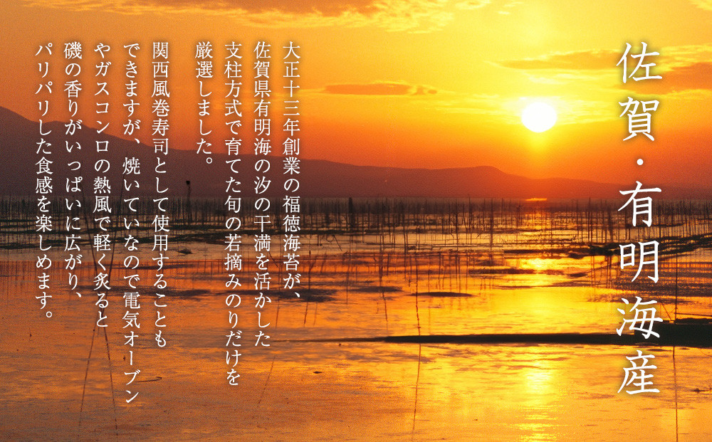 大正十三年創業の福徳海苔が、地元佐賀・有明海産海苔をお届けします。