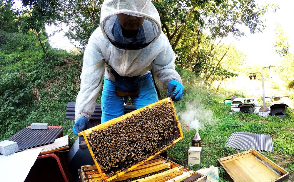 基山町の豊かな山々で5月~6月の短い期間にハゼの花を中心とした良質な蜜源を狙い採蜜した純粋百花蜜。