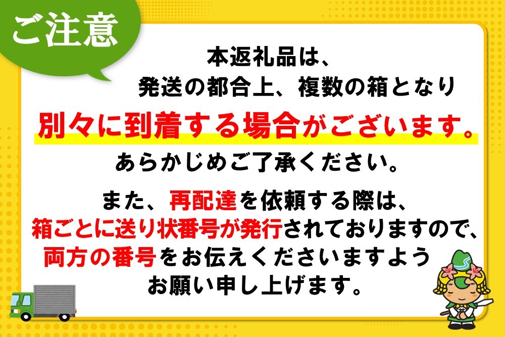なお、長期不在等によりお礼の品をお受取りできなかった場合、再発送はできません。あらかじめご了承ください。